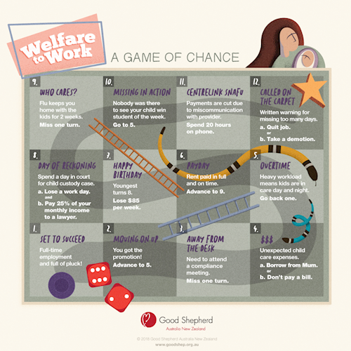 Try your luck at Welfare to Work: a practical way to understand the impacts of welfare conditionality on single mothers. Theme 1.